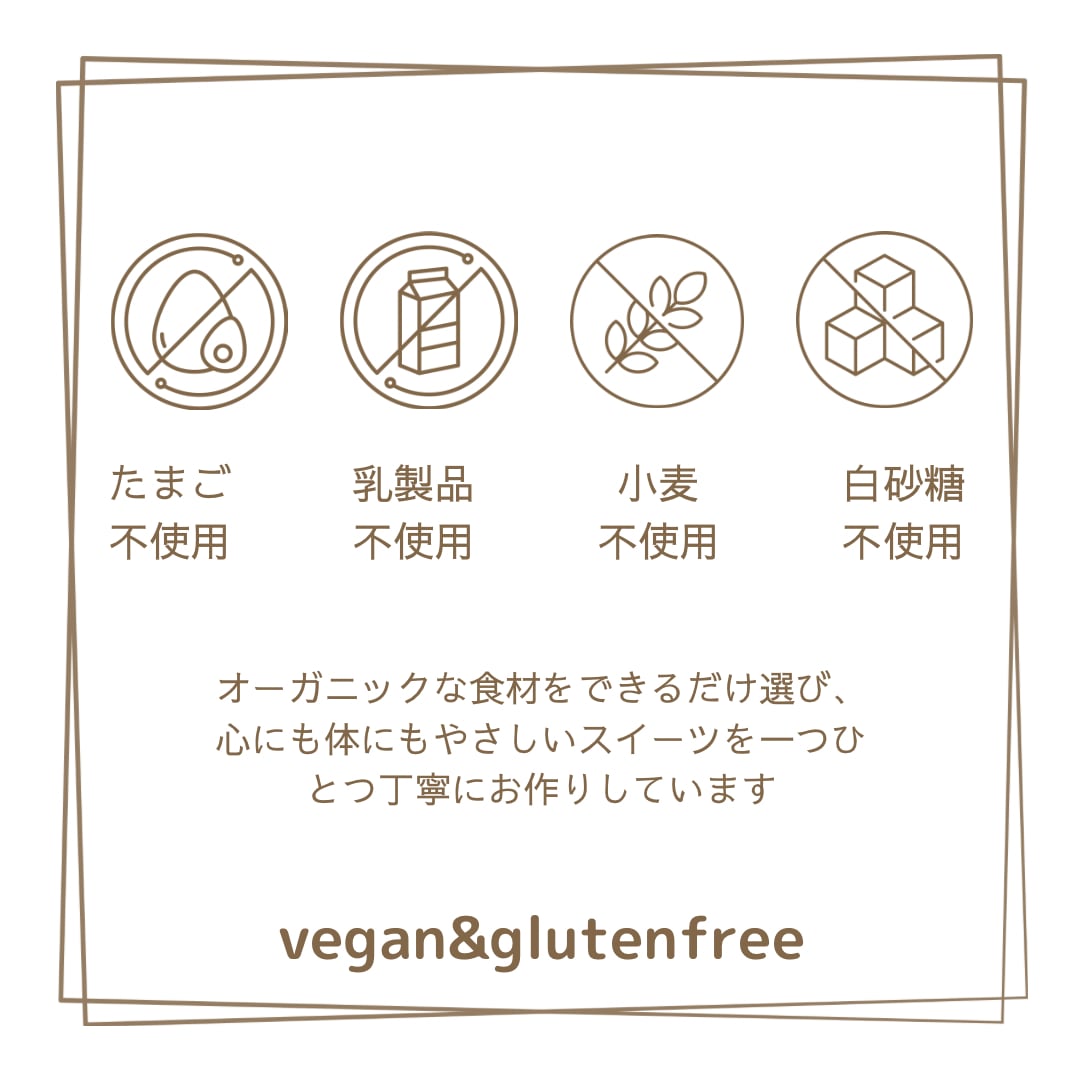 ※工房内に卵、乳製品、小麦粉は持ち込まず、不使用でお作りしてますが、材料製造工場からの配送時などのコンタミには対応できていません。重篤なアレルギーをお持ちの方はご注意ください。