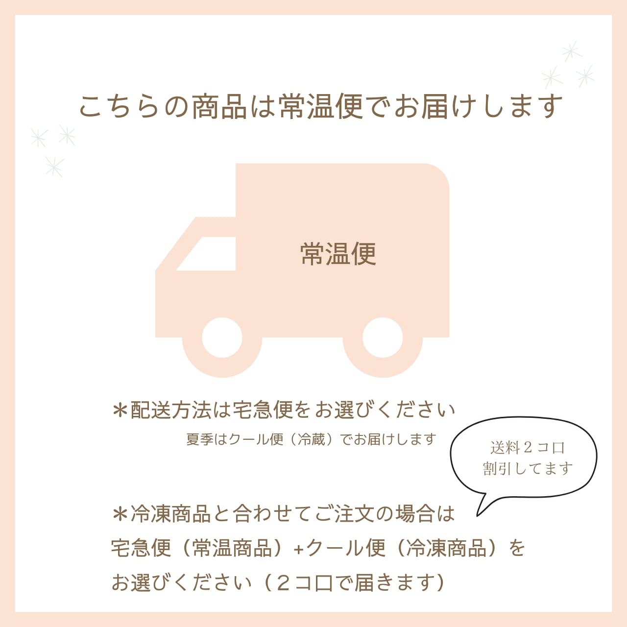 ※工房内に卵、乳製品、小麦粉は持ち込まず、不使用でお作りしてますが、材料製造工場からの配送時などのコンタミには対応できていません。重篤なアレルギーをお持ちの方はご注意ください。