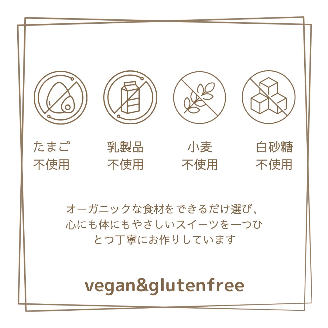※工房内に卵、乳製品、小麦粉は持ち込まず、不使用でお作りしてますが、材料製造工場からの配送時などのコンタミには対応できていません。重篤なアレルギーをお持ちの方はご注意ください。